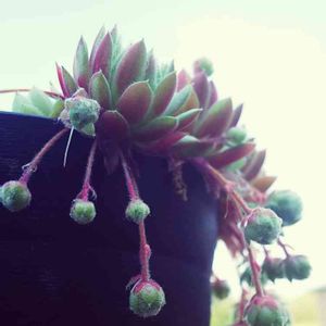 No 703 おはようございます。 センペルビウムのかんざし✨ ポロ、ポロン♪※。.:*:・'°☆ 鉢を動かす度に、揺れてる♥️