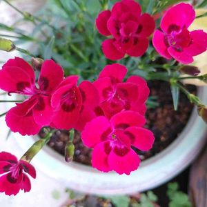 ナデシコ PW ダイアンサス ブルーリアムール ルージュ ピンクが多い我が家のお花の中で、この色はとっても目立っています❤️ 8号鉢に植えました。
