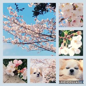 🌸🌸🌸🌸🌸🌸🌸🌸🌸🌸🌸 🌸家の前の桜🌸 だいぶ咲いてきました~🌸 今日は、ショコラ🐶も一緒にお花見🌸 久しぶりのお外で疲れたのかな? おネムのショコラ🐶でした💦