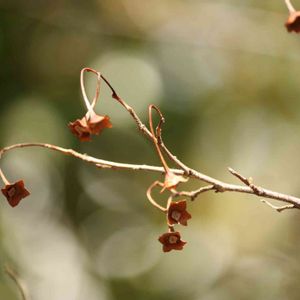 実が落ちた枝には、4枚の茶色い花びらのような萼が残っていました🤎