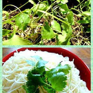昨日に続き休日の食事は麺!! 今日は素麺にしました。 GSの栽培キットのパクチーさんを乗せてみました。 パクチー好きの私にはとても美味しい素麺になりした。