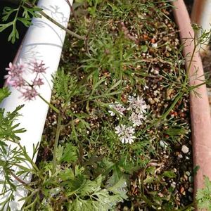 パクチーの花が咲きました。 プランター栽培、うまくいったようです。 タネ、できるかな?