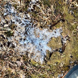 やった〜霜柱〜❄️ 呆れないでくださいね😅 こんな事がうれしいんです 競い合って踏みまくりました 苔ゴメン🙏