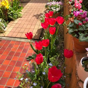 玄関の小さな花壇にしっかりと咲いています。