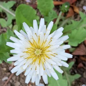シロバナたんぽぽ 見つけ〜〜た ワン🐾ちゃんの散歩道でね⊂゚U┬───┬~