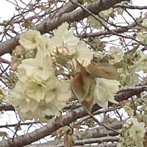 御衣黄桜の色合い、薄緑に掛かった色が好きです〜❀❀❀💚