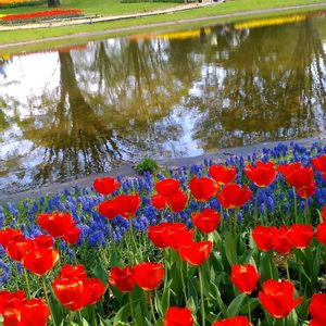 チューリップとムスカリのコラボが綺麗✨✨ 今が見頃、 見応えも有りますネ 🌷✨- ̗̀( ˶'ᵕ'˶) ̖́- 🏷昭和記念公園に参加させて下さいね🌸