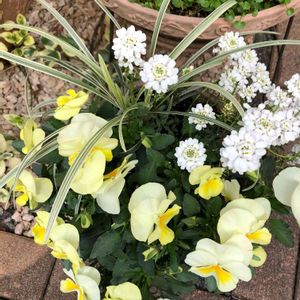 玄関の寄植えも、花数が増えて賑やかです。今日は曇っていて暗めのpicですが😅 風がとても強くて鉢植えは避難させました。皆さまもお気をつけ下さいね☺️