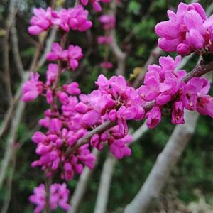 今日のお花 ハナズオウ💜⋆͛ ご近所の散歩道 今日見たら、まだサヤ(種)が付いていました(マメ科) (2021*3月下旬撮)