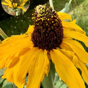 ○は2週間前、昨日見たら… 真ん中の蕊からも小花が咲いているみたい⁈🌼 とっても背高のルドベキアさん、よく見かける種類とは違います😮💛
