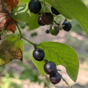 ★アラゲナツハゼ(荒毛夏黄櫨)★ ツツジ科の落葉低木 花期:5月~6月 果実:9月~10月 日本の本州(福井県以西の日本海側)、九州北部に自生。樹高2m程度。 ナツハゼに似るが、若枝や花序の軸、葉の裏に粗い毛があるのが特徴。庭木や、食べられる果実(ブルーベリーに似た黒く熟す実)を目的として栽培される。 2025.9.22 筑波実験植物園(H1)📱