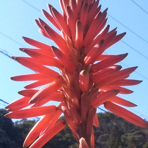 こんにちは✨😃❗ 晴れわたった空に アロエもパッカ〰️ン🌺🎶😁 今日も元気に🎶🌈 マスクの下は笑顔でいこう😄