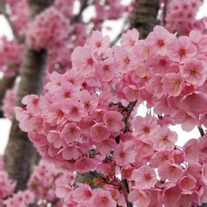 桜 陽光 天城吉野(アマギヨシノ)と寒緋桜(カンヒザクラ)の交配種です。 他の桜の中で 濃いピンクが一際 可愛く目立ちます。