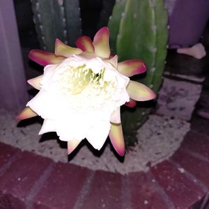 遅い時間に帰宅しました🏠️ そしたらなんと鬼面角🌵が花を咲かしてました。 満開まで見たいけど、飲み過ぎで眠い😴 頑張れるか俺
