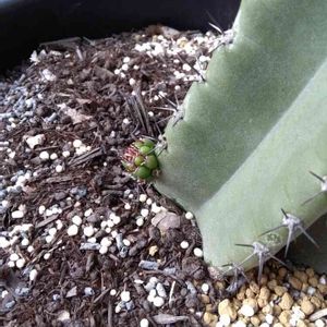 嬉しい報告🌵 7月20日に胴切りをした鬼面角🌵 段々緑色がまだらに薄くなってきて、ある日手があたってしまってパタっと倒してしまったら、全く根も出ていなくて、もう最終水耕栽培しかないかなと持ち上げて見たら、2箇所根らしきものが出ていました🌵✨✨