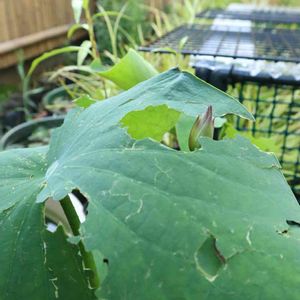 ひょう……その5最終回 花芽を守り抜いた立ち葉が痛々しい姿ですが…… 無事! 蕾を確認しました!!!! (*´ω`*) もう 守ってくれる傘はありませんし 葉っぱも全滅で この蕾が成長出来るのかちょっと分かりませんが 投稿していきます! (๑•̀ㅂ•́)و✧ 水生植物は強いです! 私もバカがつくポジティブ思考!!!!! ある意味強いw このビオトープに必ず復興の花を咲かせます! 大袈裟www (๑•̀ㅂ•́)و✧ 宿根草の庭はしょうがないですね (¯―¯٥) 明日掃除だなw 最後は真面目に…… 私の庭なんて趣味で遊びですが、私達の食を守る農家の方々の被害がとても心配です。 雹のような自然災害は防ぎようがなく怖い事が分かり、勉強になりました。 5連投〜 失礼しました! (๑•̀ㅂ•́)و✧