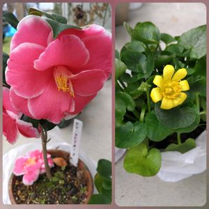 今晩は🌟 ①GS花友さんと交換で頂いた椿タマ・アメリカーナとヒメリュウキンカです😉 ②花友さんと交換した後 春キノコ🍄🟫を探していつもの山歩きへ🚶5本見つけました✌️