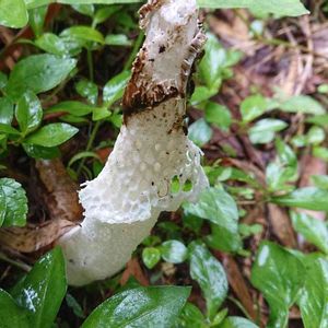 知らぬ間におわせられた… 元々水捌けの悪い土質なので、苔やキノコ発生し易いのですが… 流石に仰天しました🙄 全長15㎝前後と言ったところです💦 (2本生えてました😂) なんかおどろおどろしい見た目ですが…果たして触っても大丈夫なヤツなのか🤔