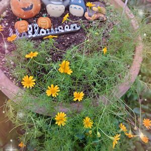 🏷日曜ビタミンカラー♪ 🏷毎月16日はトトロの日 🏷みんなでハロウィン 🏷ハロウィン月間 🏷16日はイエローの日(追加しました💛) トトロたちの収穫祭よ🎃 去年の冬春の寄せ植え鉢💓 いつもそのままにしておくのだけど、 今年は大株だったヒューケラは枯れ、 枯れたと思ったタールベルグデージーがこぼれ種で二株生えてきた💛 終わった種らしきものをいつも 置いておく作戦が決まった✌️ そうやって何年も命を繋いできた💛 黄色の小花が暴れてかわちい💛 そしてプリムラタンバリンもわずかだけど生き残ってくれてる💓 お花には真夏に遮光ネットもかけずに 放置なのに生命力に感謝🙏 今日は畑の畝作り🌱 小さな畝できた😺 Nおばちゃんも遊びに来てくれて 母と畑で昔話💞 暑いぐらいののどかな1日でした🍀 寒くなるみたいだから体調管理を 気をつけましょう😺
