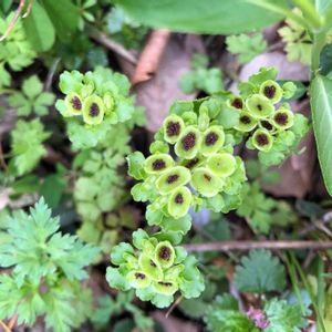 サーバーエラーが続いて3つも投稿してしまいました😨 ふたつ消します、ごめんなさい🙇♀️ 名前、教えていただきました! ヤマネコノメソウでした😃 種のような粒が 小さなカップに入っています