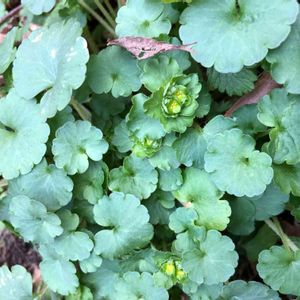 この植物の名前を教えてください。 茶色っぽい種がお皿の様な葉っぱの上にのっている様に見えます。