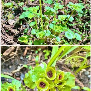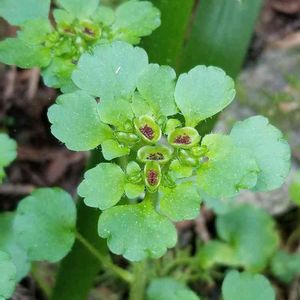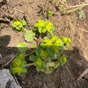 🌿🌿ヤマネコノメソウ💛🌿🌿 ニワトコの木の周りにヤマネコノメソウとニリンソウが群生しています🌿🌿💛 ↘️右下の方にニリンソウの葉っぱが見えてます🌿お花はまだ咲いてませんでした🥲 🌿ユキノシタ科の多年草