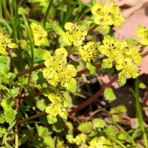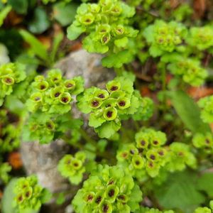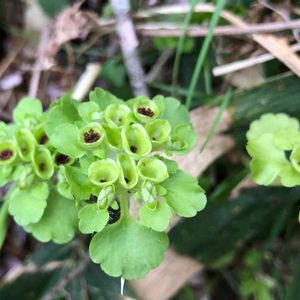 散歩の途中🚶♂️ 花茎は高さ10-20㎝。花序は6-10花を密につけ、径は2-3㎝。そのなかの花は径4-5㎜、黄緑色。 このpicは裂開した果実です。径約6㎜、種子は長さ0.7㎜。猫の目に似ています😊 果実が熟すると皿形になり小さな種をつけます。ネコノメソウ類は雨滴によって種を拡散させる雨滴散の植物です🤗植物は種の保存のために色々な工夫をしますね🤔🧐 4月30日撮影 ユキノシタ科ネコノメソウ属 多年草 山猫の目草 開花期:3-4月