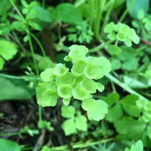 ネコノメソウの仲間はたくさんありますね。 葉は互い違いに出る互生でまばらに柔らかい毛があるヤマネコノメソウ「山猫の目草」です☆ 黄色い花は小さくて目立ちません。花の下の黄緑色の葉が美しくまるで花のようですね(*_*) 花が終わると開いていたガク片が立ち上がって猫の目を連想させるようになる様です。