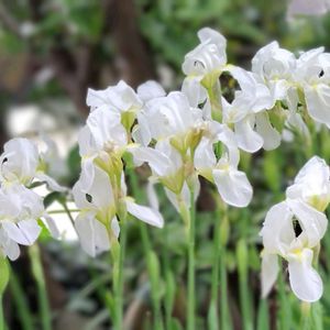 透き通るような純白の「ニオイイリス」 マンションの花壇に咲いて います🌿🌼