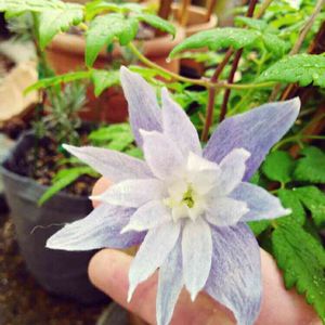 Clematis macropetala 'Wesselton' 耐寒性強 夏は冷涼な気候 ♡ॢ*‧˚♡ॢ*‧˚♡ॢ*‧˚ 売っているものは早めに花を咲かせているから、まだまだこちらの気候では外に出せません バスルームに置いたら元気になったけど、お風呂を炊いたら更に生き生き❣ もっと暖かくなったら地植えしようかと🙂 冬は葉っぱは枯れるんですよね( ˙灬˙ ก)