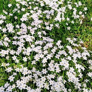 ハナニラが一面に咲いています。雨降りが続くのですがとても癒されています。