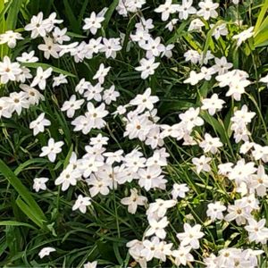 イエイオン ホワイトスター。4月10日撮影📸。 満開です🌸🎉毎年球根を間引いているのですが物凄い増えっぷり😲。
