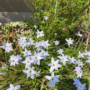 昨日とは打って変わってよく降る雨☔️ 昨日のpicハナニラ 木漏れ日の中、満開です😊