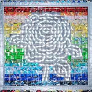 20251029 番外編「バラ」 リサイクルアート展に出品した作品です。 ビールを飲んだ後のアルミ缶を正方形のにカットして並べた作品です(ライトで照らすとバラが浮かびあがつて見えます) ①ライトで照らした状態 ②何もしていない状態