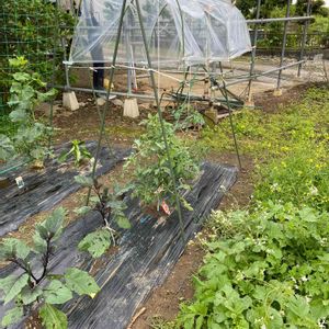 週中の休日は、農園作業に👨🌾 今日は、梅雨入りの雨降り☔️の合間に トマト🍅の雨避けを有る物だけを利用して作成・設置しました☺️ 先日のゲリラ豪雨・ヒョウ❄️混じりで、葉に穴や一部折れたりしましたが、被害は最小🙁 ラディシユは、花が🌼咲き始めて😅 トマト🍅にも花が🌼 きゅうり🥒には、小さな実が付いています😊