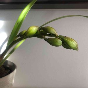 友人からいただいたシンビジューム、 咲くのが楽しみです✨ 窓から入ってきた光、なんかステキですね!