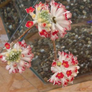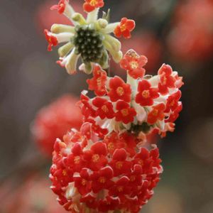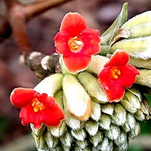 紅花ミツマタ 枝先が三つに分かれてるからミツマタ。真っ赤で可愛いボンボリ姿がとってもキュート♡