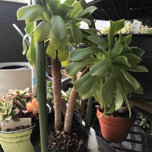 ジャングルのようなアエオ3点(隠れてる子もいます) 寒さを考慮して年末からプチプチand不織布で巻いてました。寒波の強風で鉢ごと吹っ飛んだりしました。 今日からカバー外して寒いけど日差しに当てるつもりです。葉は折れ曲がってるけど茎は大丈夫そう👍