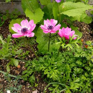今日は夏日です💧 まだ春の花が咲ききっていないのに… ①アネモネが咲きました🌸 ②モロッコナズナが満開に近いです!