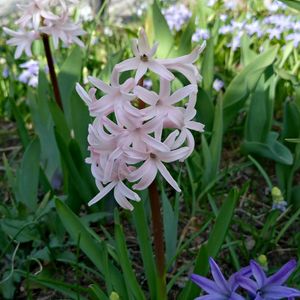 今日のお花 ヒヤシンス 〈早春のお花シリーズ〉 蓼科高原バラクライングリッシュガーデンより 清々しい可憐なお花がいっぱいです。 ご一緒にお散歩致しましょう✨ ①ヒヤシンス スキッとしていて甘い香りは、春の浮き立つ気持ちそのものですよね💖 花と鼻が仲良しで離れたくない ②プシュキニア・スキロイデス 初めて会えて嬉しかった! 氷のような透明感ある美しさ。群生です ③シラー・シベリカ 星が落ちているようなお花 ブルーもあります ④原種チューリップ&雪割草 原種は素朴で美しい 雪割草も、白雪姫のようでした ⑤プルモナリア ちょいワル雰囲気の斑入りの葉っぱと、華やか色のお花がハッとさせられます 人気のないガーデンの中を、鳥の囀りを聴きながら、地面にベタ座りして、植物とお話しできました 2024年4月13日