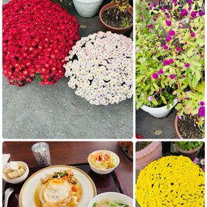 こんにちは☺️ 菊さん色々なところで見かけます🌸 千日紅さんと共にお店の前に飾ってありました🤗 ランチのガパオライスと共に🍽️