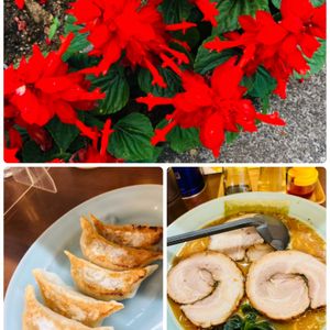 連投失礼いたします🙇♀️ 真っ赤なサルビアさん❤️ ランチのラーメン&餃子🍜🥟 午後も良い時間を🤗