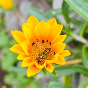 こんにちは☺️ ガザニアさんに蜂さんが(ハナアブさんかも) 寄ってきています🤗 お店にて