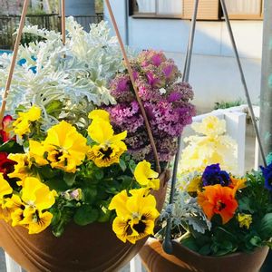 おはようございます☀️ 金魚草さんホワイトは清楚ですね✨ 寄せ植えさん華やかです🥰 パンが食べたくなり🍞お店へ 良い一日を