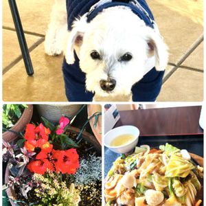 こんにちは☺️ 健康診断の後、昼食無しだったので 中華料理屋さんに駆け込みしました😋 お店の看板ワンコと別のお店の寄せ植えさんと、あんかけ焼きそばと共に🤗