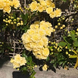 昨年1メートルの木香薔薇黄色の苗木を植え、 縦に横に伸び、GW前頃から少しずつ咲き始めました。しかし!少し雨続きの後、急に 葉っぱ全体にうどん粉病が広がりました。 なので消毒剤を散布して様子を 見ています。ダメなら可愛そうだけど、 土造りから始めようと思います。 がんばれ!木香薔薇!