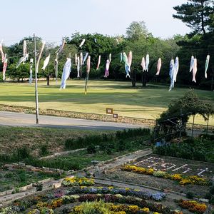 今日はこどもの日ですね。🎏 近くの運動公園にも、鯉のぼりがたくさんあがっていました。😃✨ 手前の花壇のファイト(Fight)の文字が、元気をくれます。😄🎶 今朝の散歩より。🚶♀️ 頑張ろう❗日本‼️ 👊✨