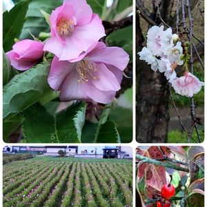 今朝の散歩より。✨ ↖️↗️品種名はわかりませんが、桜です。😃 特に左の桜は、葉っぱも青々としていて綺麗なピンクのお花が美しかったです。💗 ↙️夏の終わり頃、散歩道の脇の畑にコスモスらしきものが植えられているのに気づき、えっ👀⁉️ 今から? と思っていましたが、ようやくお花が咲いてきました。🎶 これからが見ごろです。😆 草丈50cmくらいなので、少しくらいの風雨では倒れそうもありません。😄 ↘️ハナミズキの紅葉と真っ赤な実。✨ 頑張ろう❗日本‼️ 👊✨