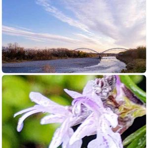 今朝の空は、雲が東から西まで長くスジになっていて、雄大でした‼️😃 ローズマリーの花が、健気に咲いていました。✨😊 頑張れ❗日本‼️ ✊‼️