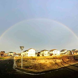 おはようございます。✨ 撮れたての虹です‼️ パノラマ撮影、何とかできました。😆 植物じゃなくてごめんなさい。🙇 こんなに全体が綺麗に見える虹、実際に見たのは初めてだったので。😃🌈✨ 頑張れ❗日本‼️ ✊‼️